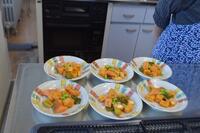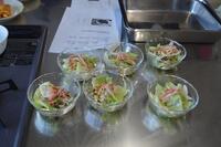 11月19日(水)3年生の「消費生活」の授業の一環で、「釧路町食育推進ネットワーク研修会」が実施されました。釧路町健康けんこう応援課や地域の方々の協力により、「鮭のチリソース」と「釧路町産昆布の香りを引き立たした5種のマヨサラダ」の調理実習を行いました。これらのメニューは、これまでの授業の中で地産地消をテーマにレシピ開発をされたものです。生徒達はグループで協力しながら実習を行い、調理教室の中には食欲をそそる香りが漂っていました。生徒達が和気藹々とした雰囲気で活動している姿が印象的でした。