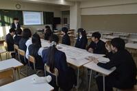 地域から総勢14名の協力者の皆様に来校していただき、生徒と探究学習について協議を行いました。生徒達は、いつもは見せないような緊張感のある面持ちで進捗状況について発表を行いました。その後、協力者の皆様からアドバイスをもらい、探究学習の着地点についてより具体的なイメージを持つことができたようでうす。