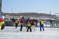 2月6日(金)長ぐつアイスホッケー大会が行われました。昨年は大雪で中止、今回は未明からの降雪により開催が危ぶまれましたが、釧路町長ぐつアイスホッケー連盟の皆様により早朝から除雪やコート整備をしていただき、2年ぶりに開催することができました。長ぐつアイスホッケーは釧路町発祥の競技で、スケートの代わりに長靴でアイスホッケーを行うもので全国大会も釧路町で実施されています。本校の大会は1、2年生対象で、多くの生徒が初めての経験でした。長靴で氷上を走ることは下半身に力が入り、予想以上に体力を使います。生徒達は滑る氷の上で悪戦苦闘をしながらも、チームで戦術を話合うなど勝利に向けて探究的な姿勢も見せていました。昼食は、保護者による炊き出しの提供があり、暖かい豚汁で冷えた体を温めることができました。長ぐつアイスホッケー大会を楽しみにしていた生徒が多く、思い出に残る1日になったことと思います。大会運営に御協力いただいた釧路町長ぐつアイスホッケー連盟の皆様、保護者の皆様、ありがとうございました。